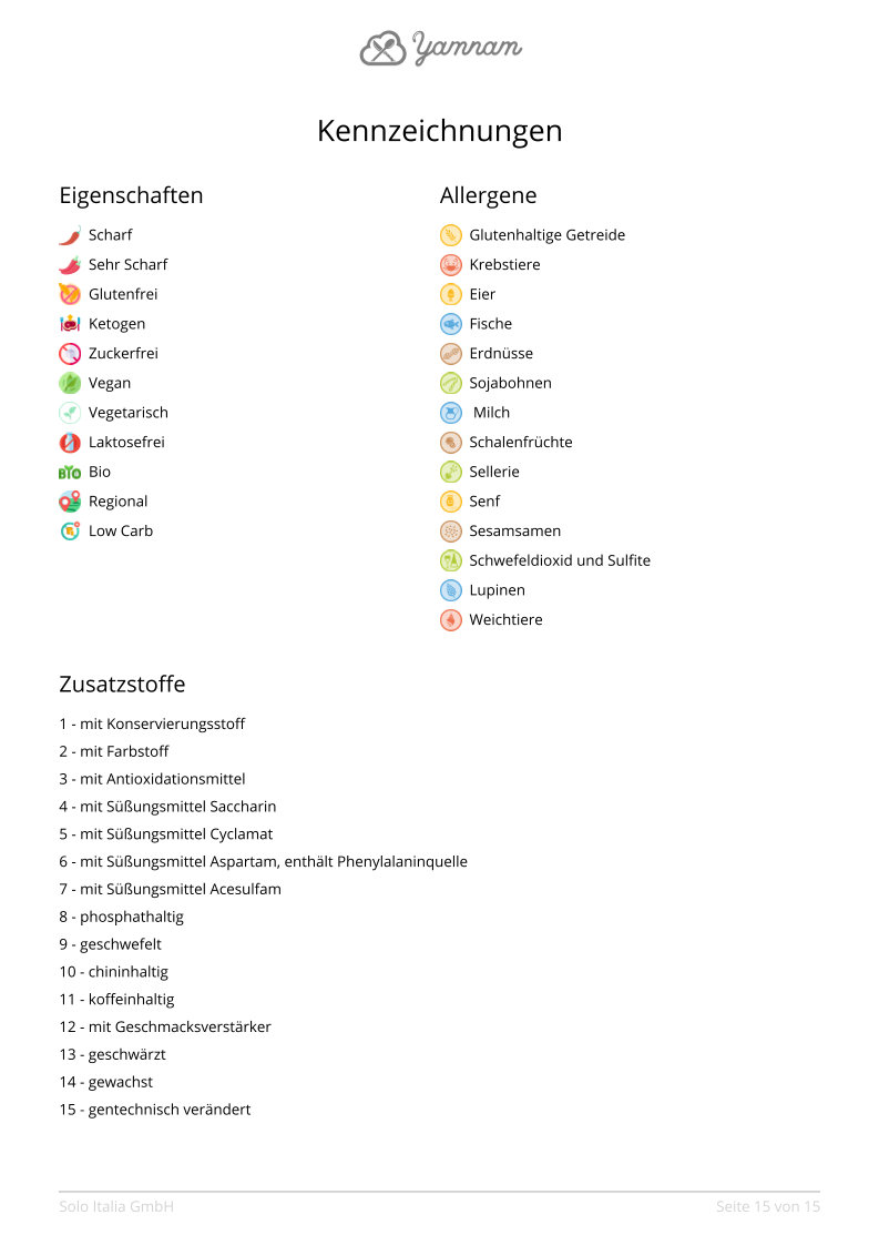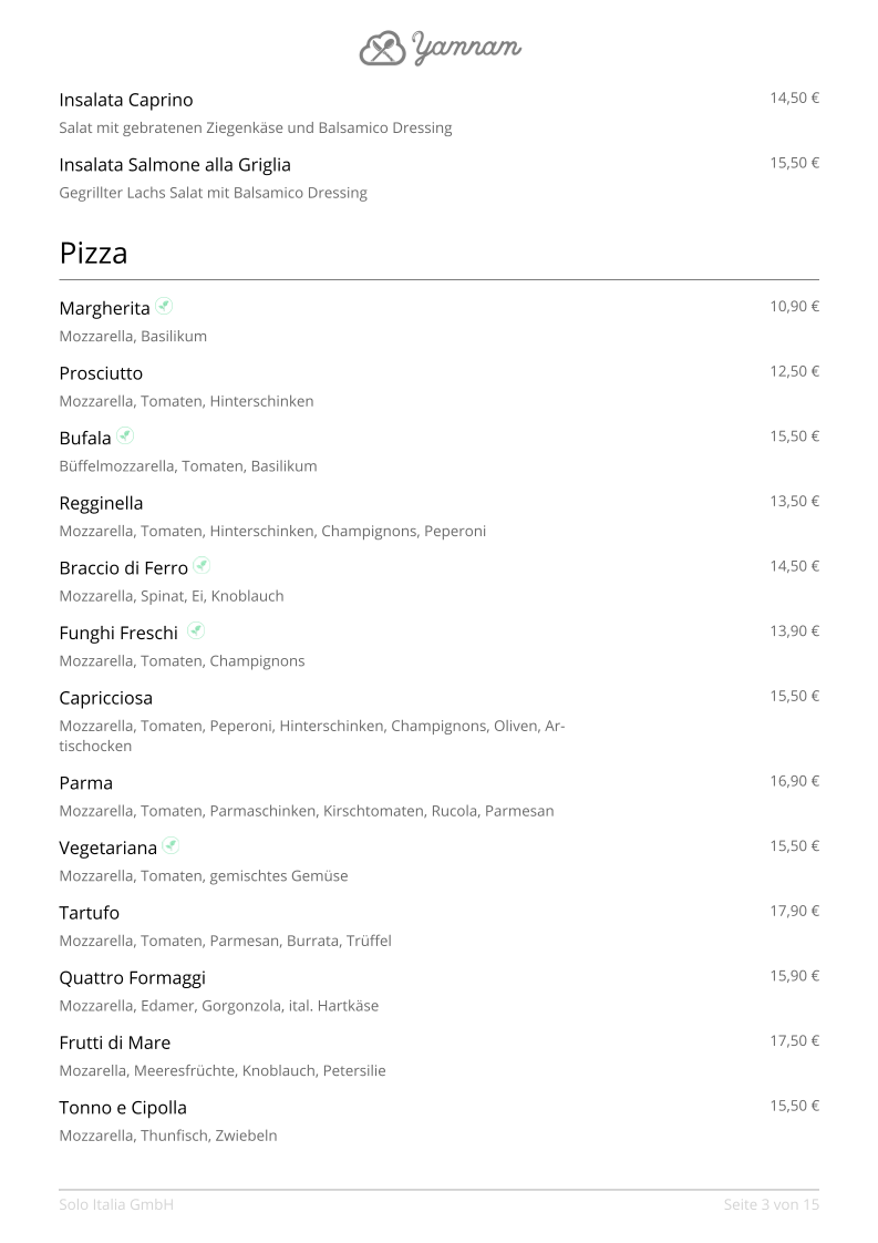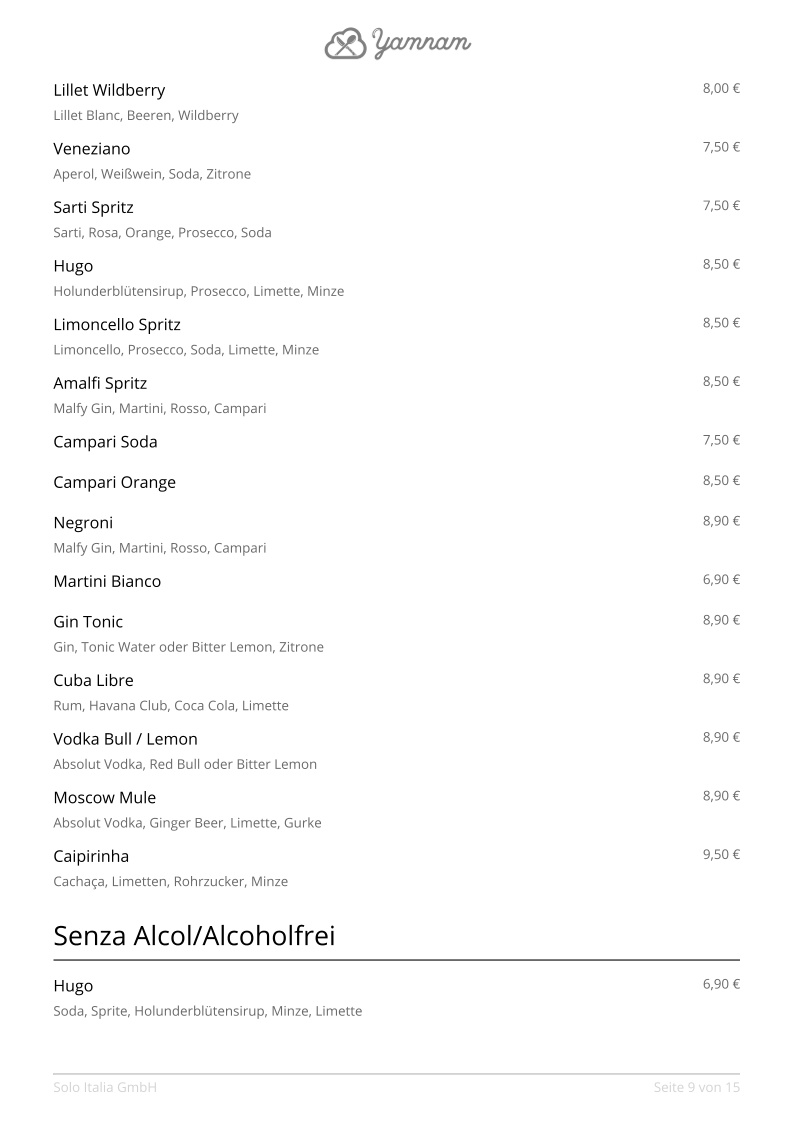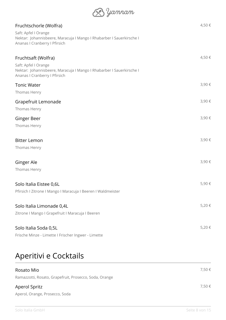 Solo Italia GmbH Menu